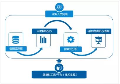 自助式BI業(yè)務(wù)流程(來(lái)源:《2019中國(guó)BI商業(yè)智能行業(yè)報(bào)告》)