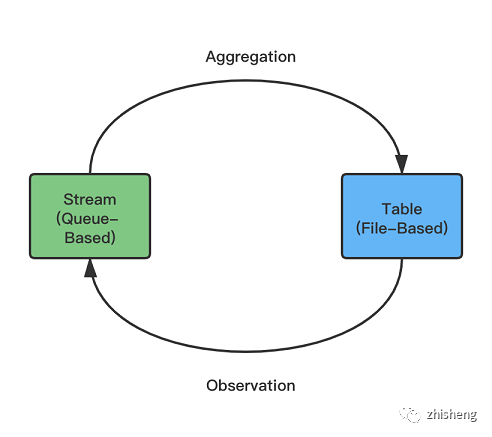 通過上述的分析,相信不少讀者已經隱約感覺到:基于文件的存儲類似流表二象性中的表,適合用于保存可以被查詢的可變狀態(計算的最終結果或中間結果),而基于隊列的存儲類似表示流表二象性中的流,適合用于保存被流計算引擎讀取的事件流(Changelog 數據)。