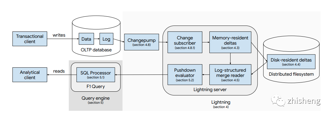 數據同步機制如何確保數據一致性和新鮮度(freshness)。不同于基于 Hadoop 的數據倉庫通常允許小時級別的數據延遲和不一致窗口,HTAP 通常承諾強一致性以保證一個查詢無論被路由到 OLTP 系統還是 OLAP 系統都能獲得一致結果,這對數據同步機制的性能和容錯性都提出很高的要求。目前在 HTAP 領域稱得上 State of the art 的兩個數據庫里,F1 Lightning 使用無入侵的 CDC 方式進行同步,TiDB 基于 Raft 算法進行數據復制。前者松耦合,但實現比較復雜;后者更加簡潔優雅,但會受 OLTP 設計的約束,比如復制的數據塊大小需要與 OLTP 一致[16]。