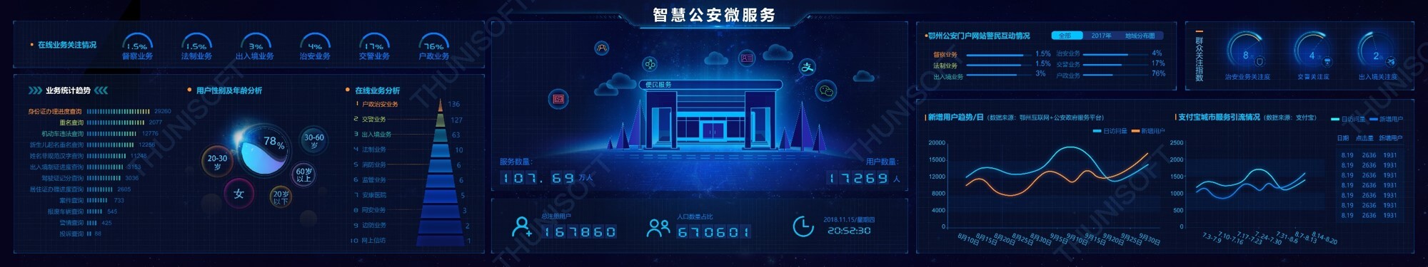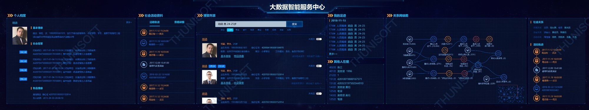 智慧公安實戰(zhàn)應用包括了智慧搜索、智慧建模、智慧服務、智慧監(jiān)督、智慧標簽、智慧小區(qū)、智慧管控以及智慧監(jiān)測,實現個人檔案的查詢,同時關聯社會關系和活動軌跡并繪制出關系網絡圖,通過建模顯示各模型使用情況和資源訪問量、訪問趨勢,進行在線業(yè)務分析,各類警務案件指標分析,根據標簽標準生成人員畫像,通過重點人員異常軌跡進行警情監(jiān)測,根據熱點追蹤進行傳播路徑分析,實現公安智慧化管理。